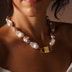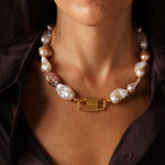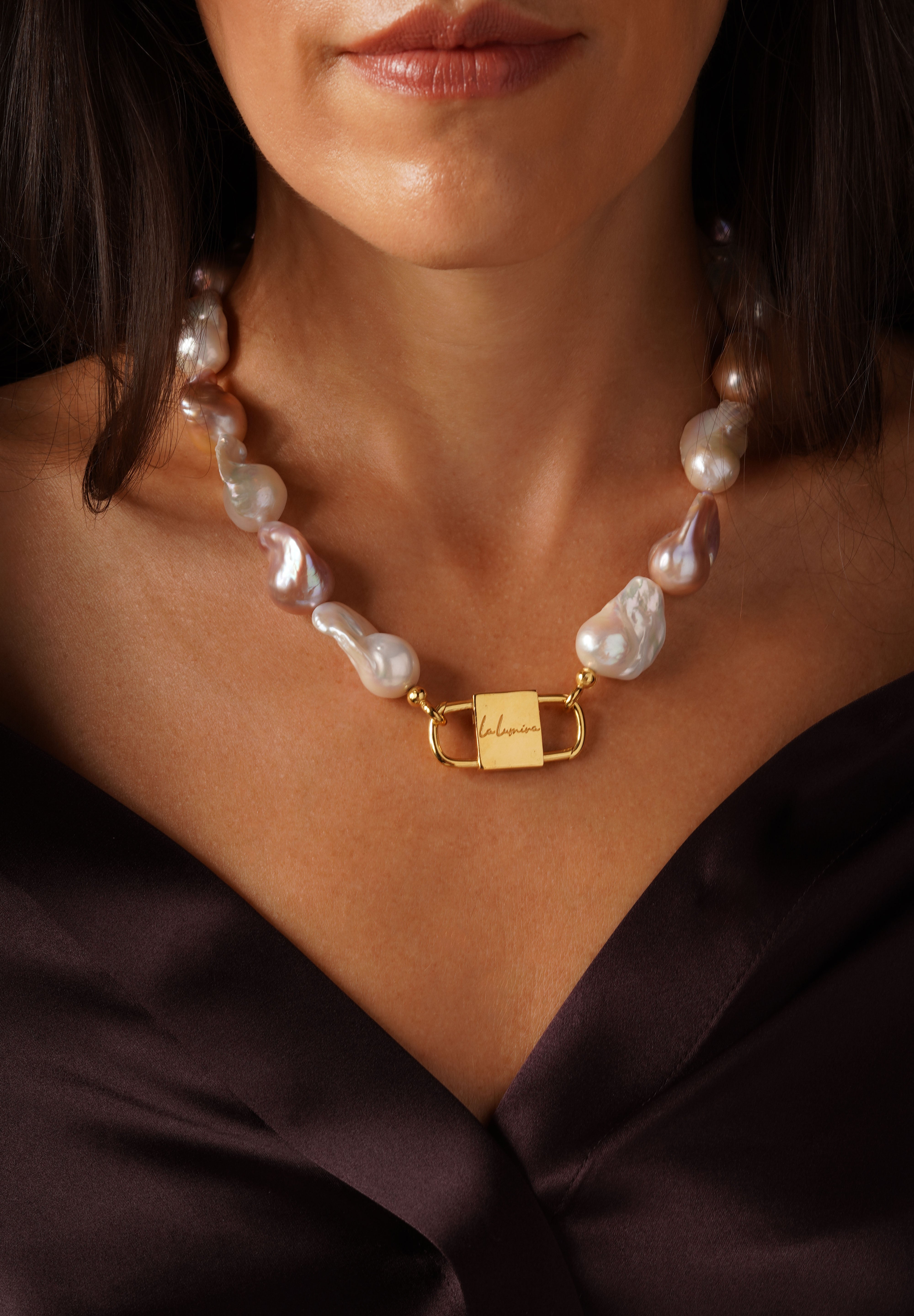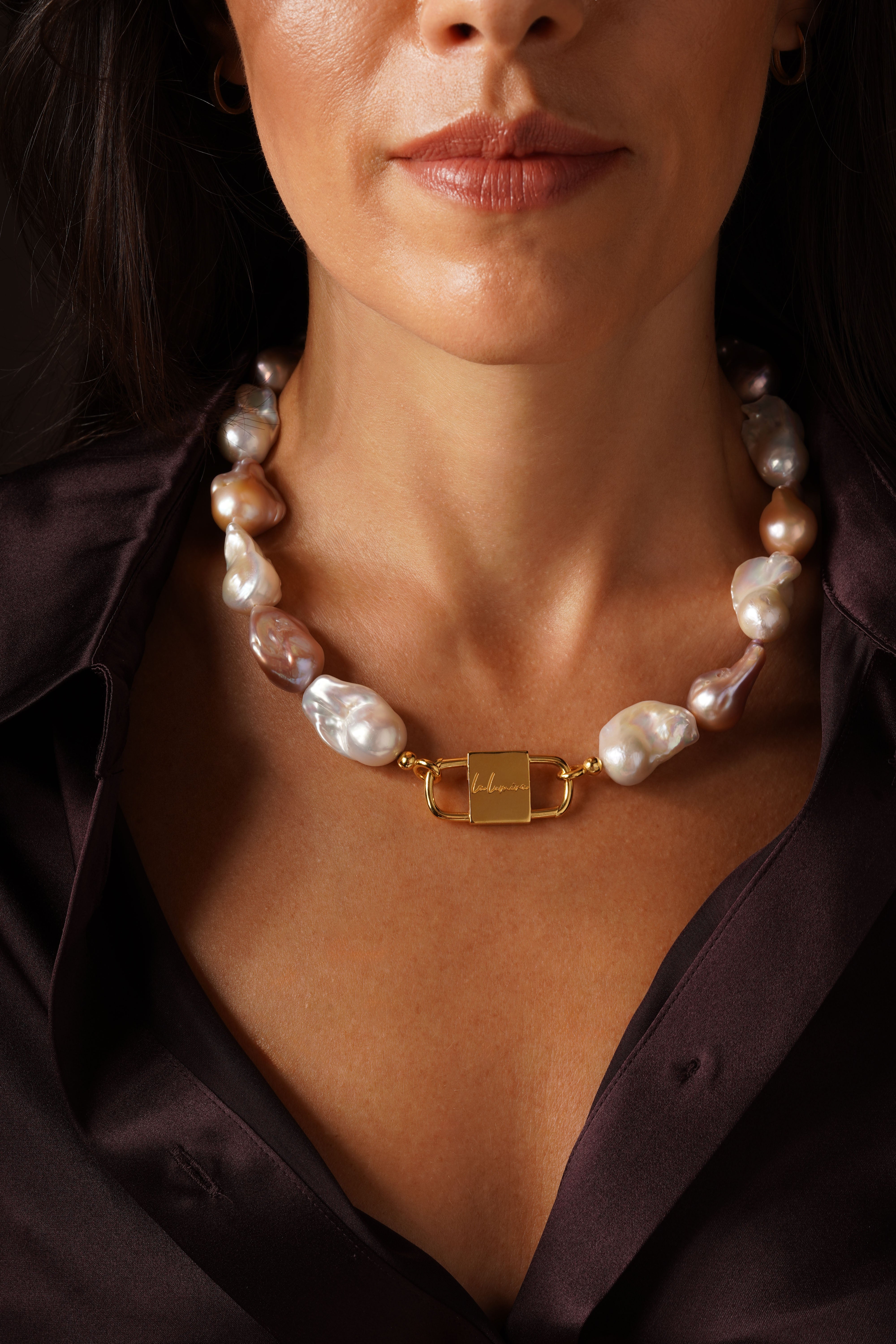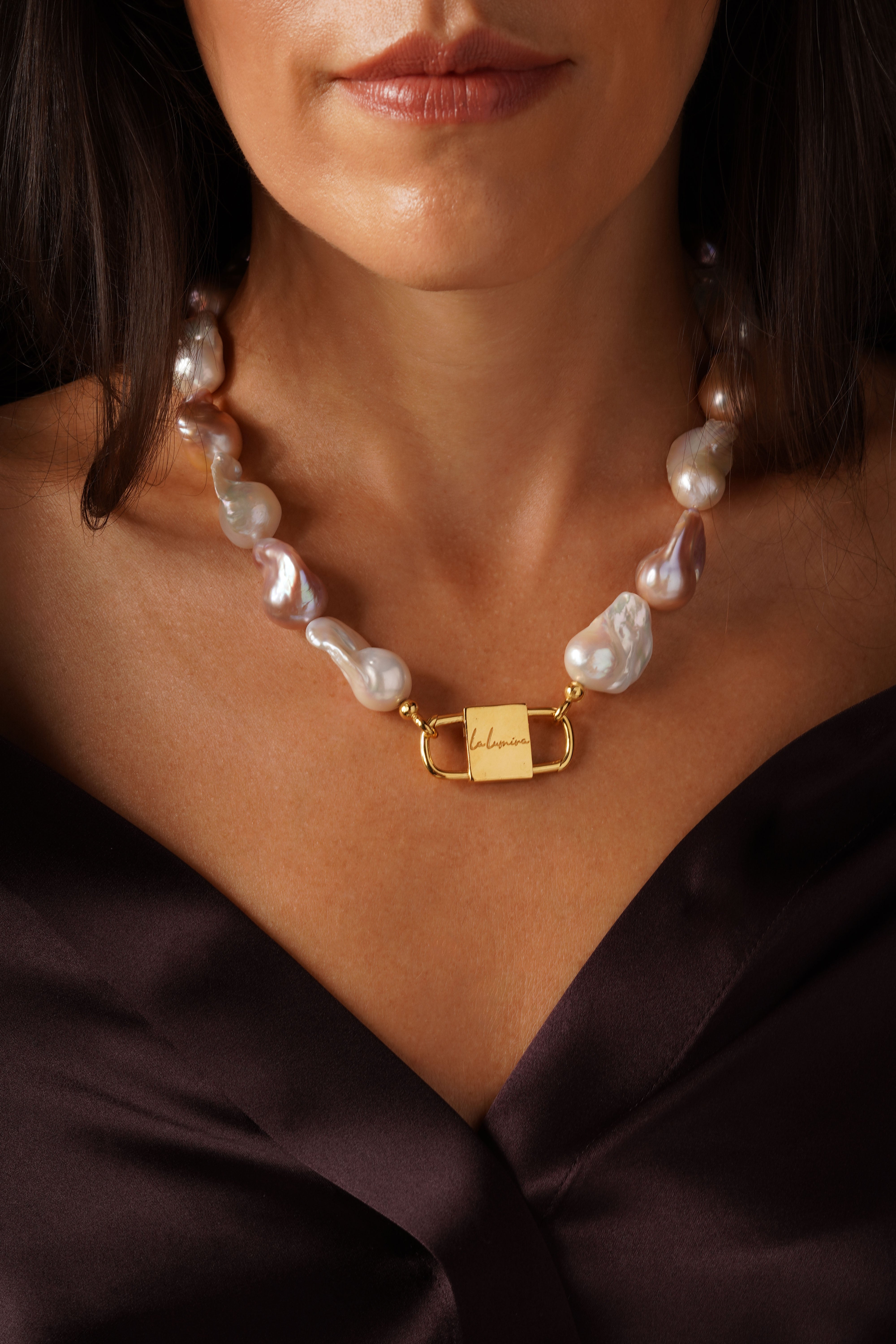 Nature’s Gems koleksiyonundaki bu tasarım, renkli barok incilerin zarif ışıltısını modern bir formda yorumlar. Her inci, tonu ve parlaklığına göre özenle seçilmiş; kompozisyon La Signature Lock ile tamamlanarak zamansız bir bütünlük kazanmıştır.